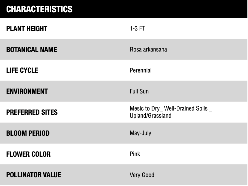 Arkansas Rose, commonly called Prairie Rose, is native to the central portion of the United States from Texas to the Great Lakes region and from New Mexico to Montana.