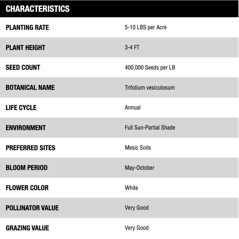 Arrowleaf clover is an annual, cool season, introduced legume commonly used in many areas of the Midwest and Southeastern parts of the United States for many applications and uses. This upright clover easily re-seeds and reaches heights of 3-4 feet.
