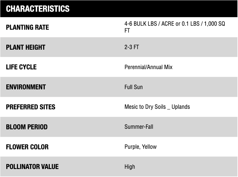 Establish in existing native grass stands or as a standalone wildflower mixture