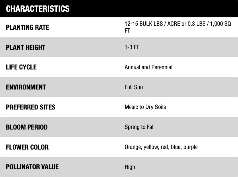 Establish in existing native grass stands or as a standalone wildflower mixture