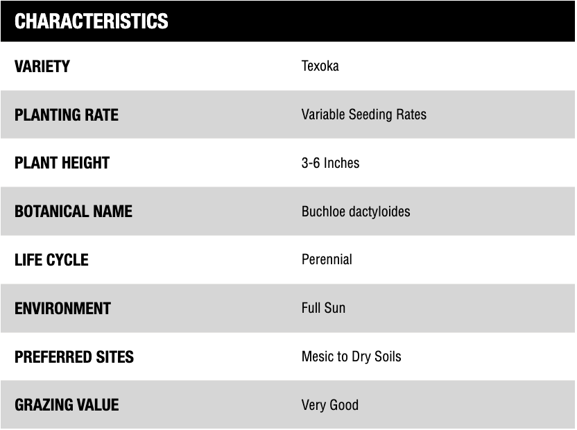 Buffalograss is a perennial, native, low-growing, warm-season grass found in much of the central plains and intermountain regions of the United States. This versatile native specie can be used for many applications such as erosion control, range grass and turfgrass.