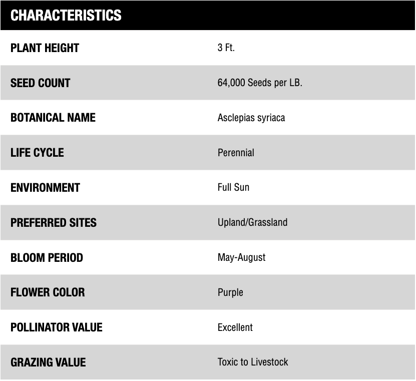 Common Milkweed is important perennial native wildflower for pollinators most common in the Midwest and Eastern areas of the United States. This wildflower is often found in open prairies, ditches and woodland edges.