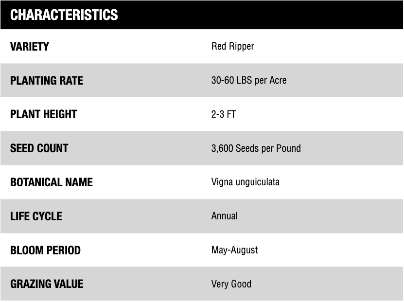 Cowpeas are a summer annual legume that can provide high protein summer hay or pasture. Similar to soybeans, but are more tolerant of heat and drought, with softer stems and better regrowth after grazing.