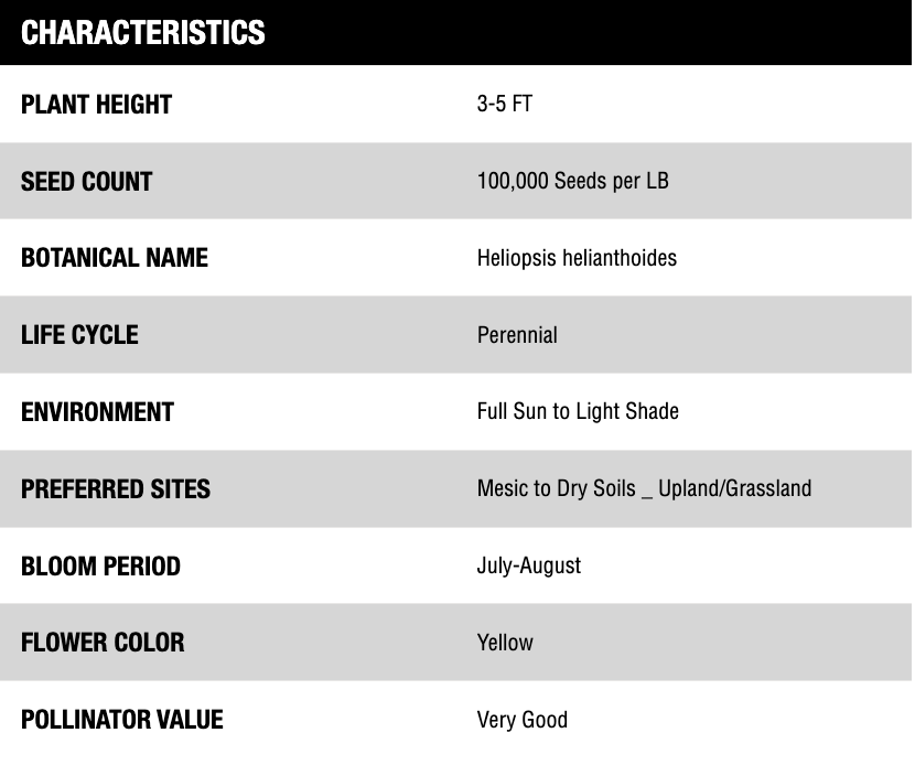 False Sunflower is a perennial forb native to the eastern half of the United States and Canada. Also known as Oxeye Sunflower, this aggressive wildflower inhabits upland prairies and open grasslands.