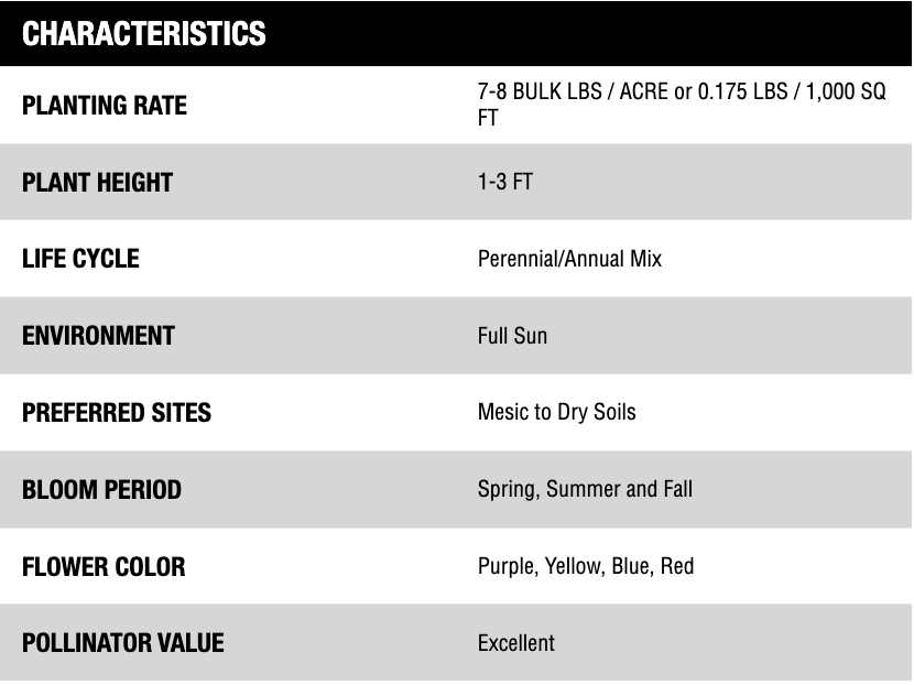 Establish in existing native grass stands or as a standalone wildflower mixture