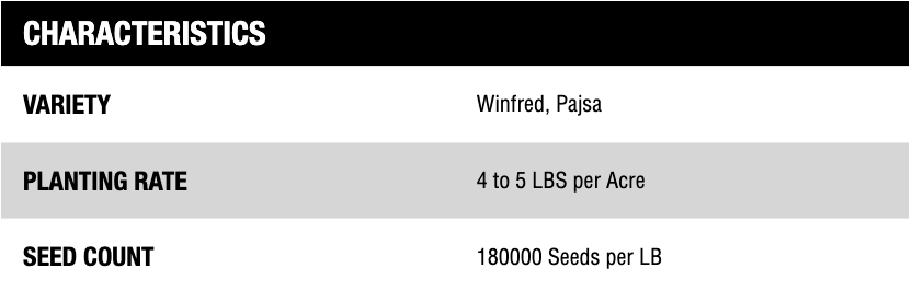 Pasja or Winfred can be used to supplement or extend the grazing season when cool season pastures slow down because of summer heat or the cold. They can add high quality forage to the summer diet. Pasja re-grows along with the summer annual grasses for multiple grazings. Both Pasja and Winfred provide excellent tonnage and high quality forage to the mix for multiple grazings. Pasja also works well if sown after a cereal crop is harvested for late-summer/fall grazing.
