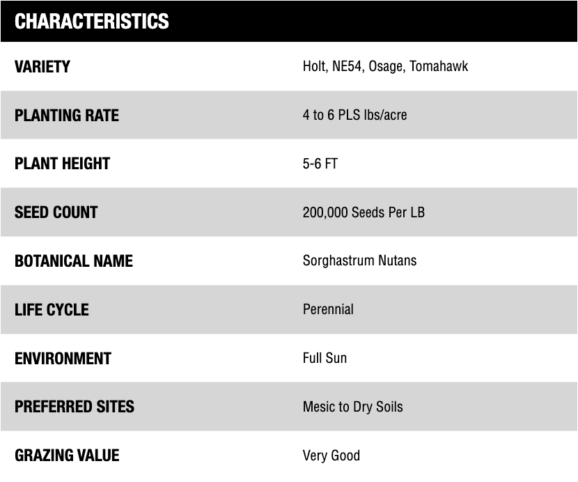 Indiangrass is a warm-season tall grass. It is a bunching sod-former that grows from 3 to 5 feet tall in leafy clumps. This perennial native grass is generally found east of the Rocky Mountains.