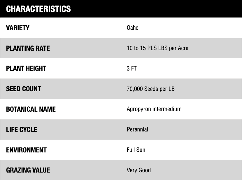 MANAGEMENT: Intermediate Wheatgrass is used for pasture, hay, and for conservation purposes. Do not graze until new seedlings are headed and firmly rooted. Moderate grazing is essential, leave a 4 to 6 inch stubble. Stand longevity an be improved by resting it from grazing for 1 to 2 months during the active growing period. This grass is particularly useful where water supplies may be inadequate during late summer.