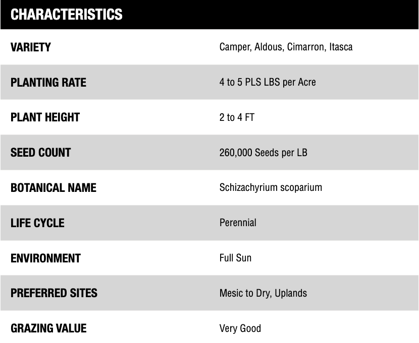 Little bluestem is a warm-season, bunch-type, perennial native grass found throughout much of the United States. This intermediate stature native grass is an important specie for many uses, applications and ecosystems. Several improved cultivars offer varying degrees of adaptability, palatability, heat and drought tolerance and forage quality.