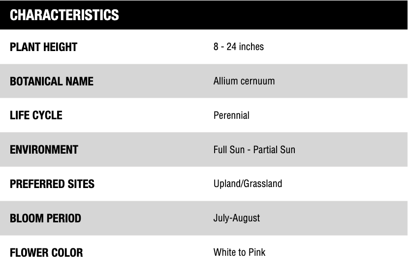This beautiful perennial bulb grows widely across the United States and tolerates many different growing condition. Nodding pink onion grows well in many soil types and moisture levels, it grows best in full sun but will also handle partial shade. Once established, it is very easy to maintain and is known to be drought tolerant. Rarely growing over 2 feet in height, it blooms with a drooping inflorescence of pink/purple/white flowers that are attractive to many nectar seekers from July-August.