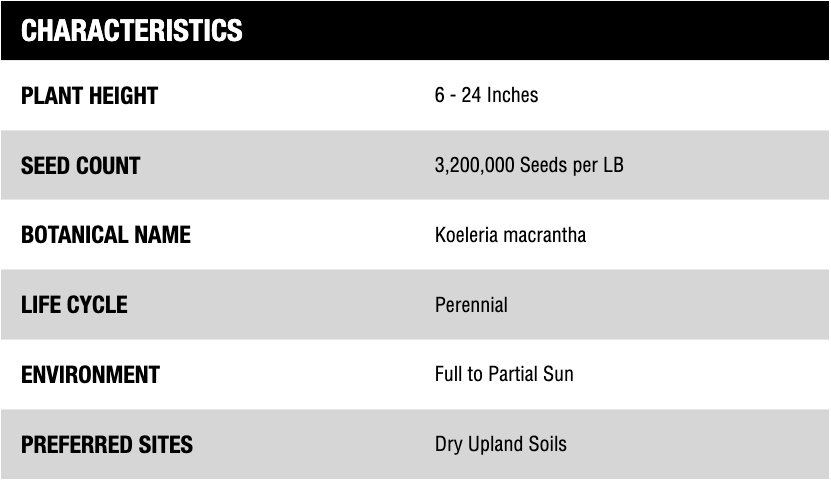 Prairie Junegrass is a perennial cool season bunchgrass. It greens up early in the spring and provides good early spring forage and fair late spring forage for livestock. The narrow leaves form small basal clusters with several seedheads.