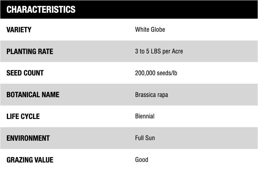Turnips are a short season brassica that is easy to grow, and is primarily planted for pasture, wildlife, and cover crops. Purple Top Turnips can develop a tuber of about 3.5 inches in diameter and rapidly reach a vegetative height of 2 to 3 feet.