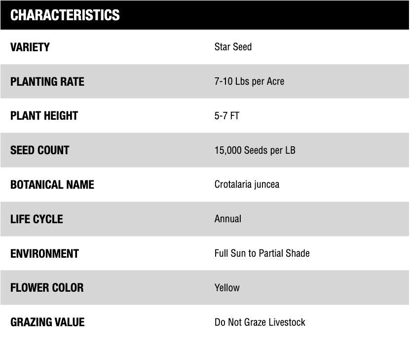Sunn Hemp is a fast growing warm season Legume. Sunn Hemp requires warm soil temps to germinate and can reach a height of over 7ft.