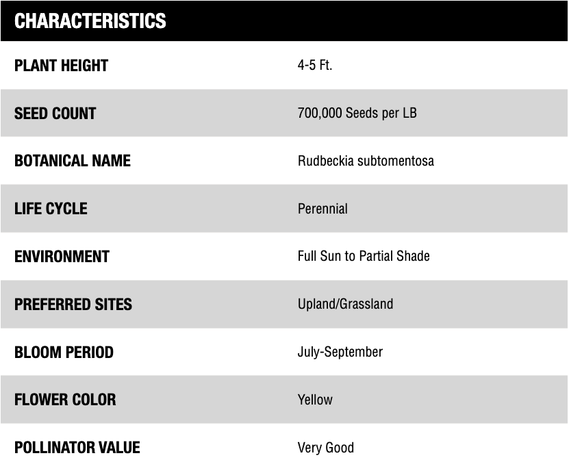 Sweet Black-Eyed Susan is native, perennial forb to the central United States from Texas to the Great Lakes. This attractive wildflower is longer lived that it's cousins, Brown-Eyed Susan and Black-Eyed Susan