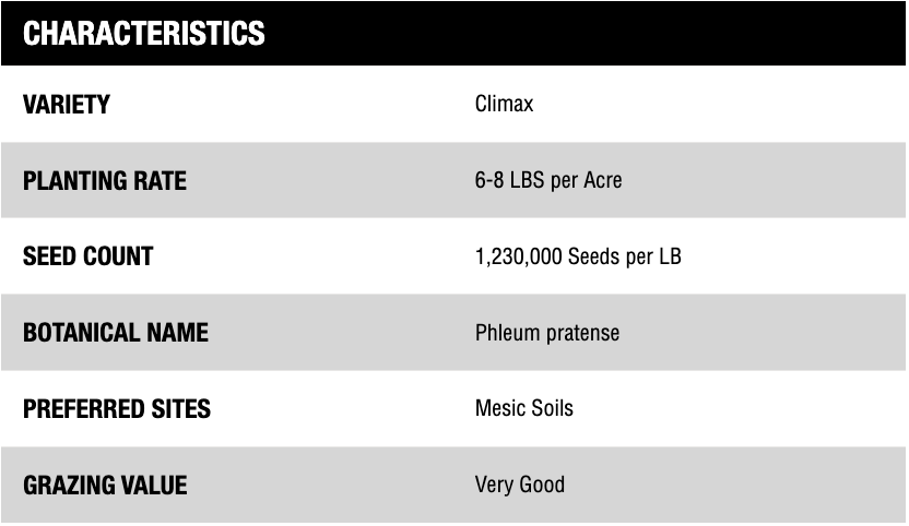Is an introduced cool season forage type grass that is native to Europe. Timothy is a short-lived perennial and is widely used in the Northern U.S. and Mountainous West and thrives in deep, fertile, loamy, silty, clayey soils of humid zones.
