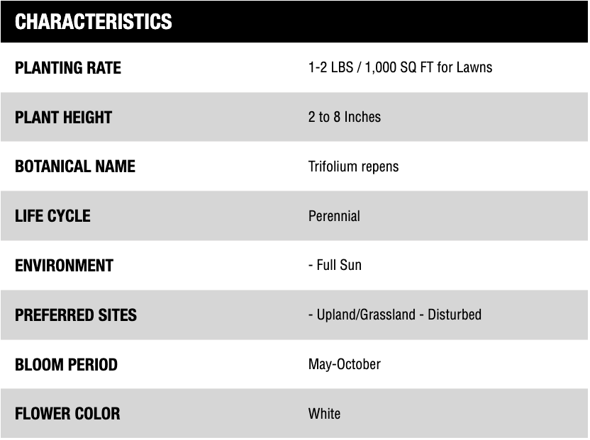 White Dutch Clover is a short growing perennial legume which was introduced from Europe but is now naturalized throughout Canada and the United States. A strain of white clover, this specie is closely related to Ladino White Clover, which is the taller of the two species.