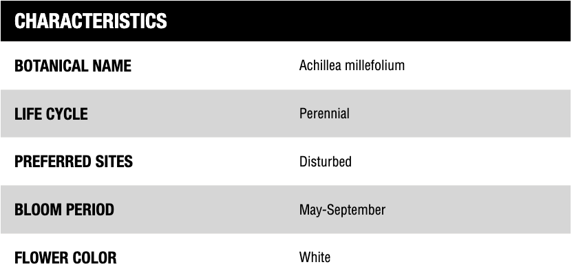 White Yarrow, also known as Common Yarrow, occurs throughout most of the United States and can be found in disturbed areas of upland grasslands and open woodlands. Growing 1-3 feet in height, it prefers dry soils and full sun to partial shade. A large bloom period from May-September make this a great species for bee and butterfly gardens with its large clusters of small white flowers. This perennial plant spreads through both seeds and rhizomes and can form large colonies if allowed to do so.